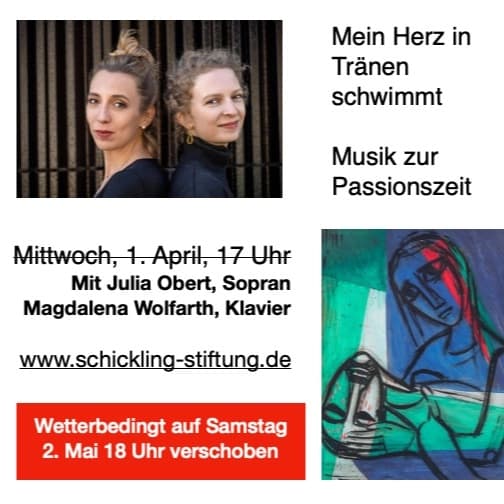 Lyrische Stimmkultur und erzählerische Klavierkunst prägen das Programm zweier sensibler wie weltoffener Künstlerinnen: Julia Obert, Sopran, und Magdalena Wolfarth, Klavier.